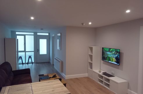 First Floor:  The first-floor accommodation includes a spacious modern living room, a single bedroom, and a bathroom. The living room offers wonderful views across the harbour to Inishnee Island and is very well furnished with leather sofas, large screen multi-channel TV and electric coal effect fire. The bathroom includes bath, WC, sink, and shower over bath. The single bedroom has sea views and has a 4ft bed, ideally suited to one adult.