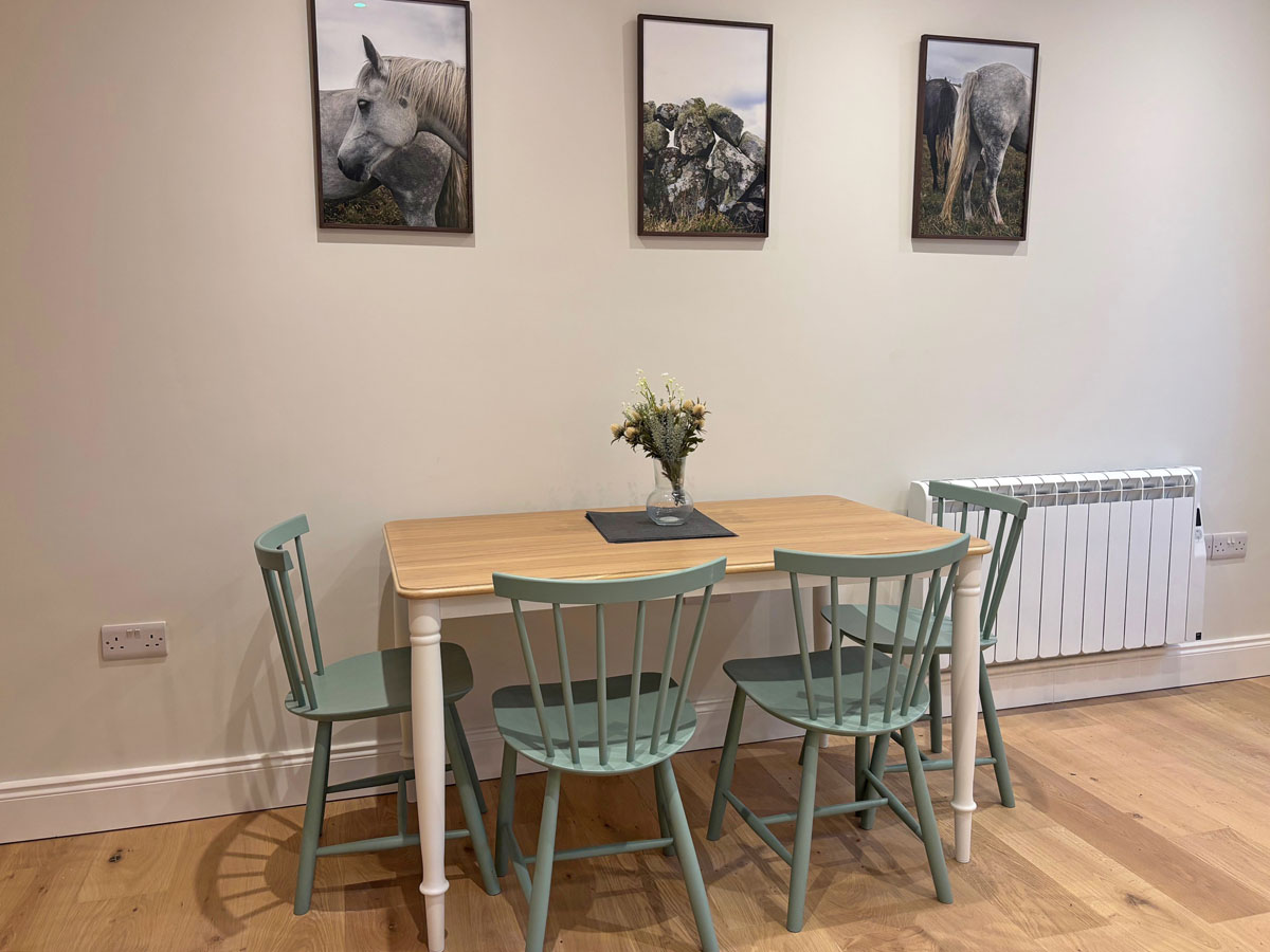 The dining area is off the living room with seating for 4. Upstairs, you will find a double bedroom furnished with a comfortable king size bed, full length mirror and ample storage for your belongings. The second bedroom is a twin room furnished with two single beds and again ample storage options. the main bathroom complete with large shower with rainfall showerhead sink and WC. The property is electrically heated throughout. Bed linen and towels are provided. Electricity and Wi-Fi are included in the rental price. Travel cot and highchair provided on request. Smoking is not allowed. Free on street parking is available outside the cottage. Short breaks are available all year round.
