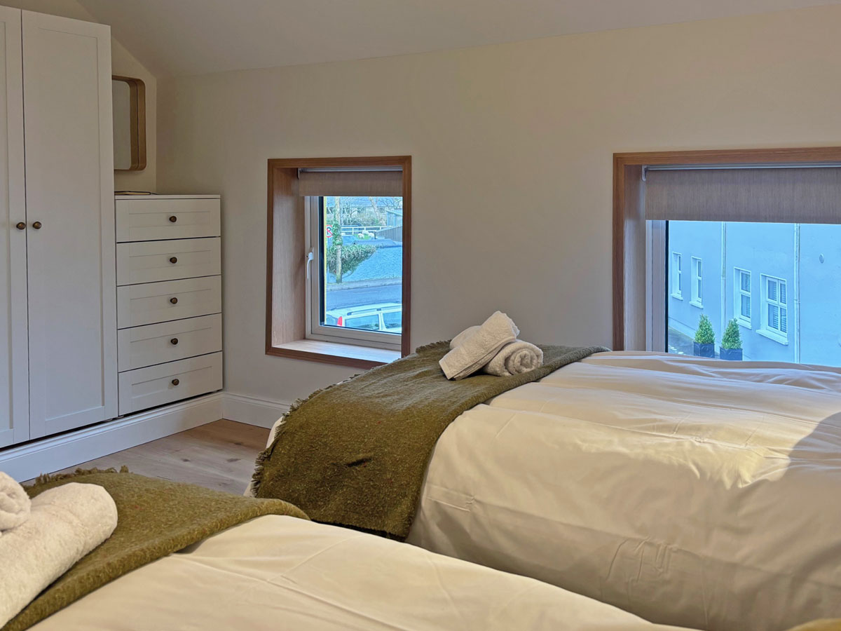 “The Old Forge” 2 bedrooms, sleeps 4. A beautifully renovated modern townhouse conveniently located in Clifden town. Wi-Fi. Perfect for couples & friends to share. this newly renovated listing boasts modern design, the very best in amenities and super comfy furnishings throughout.