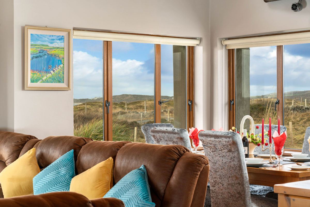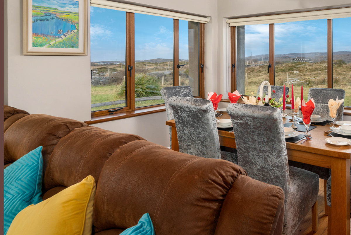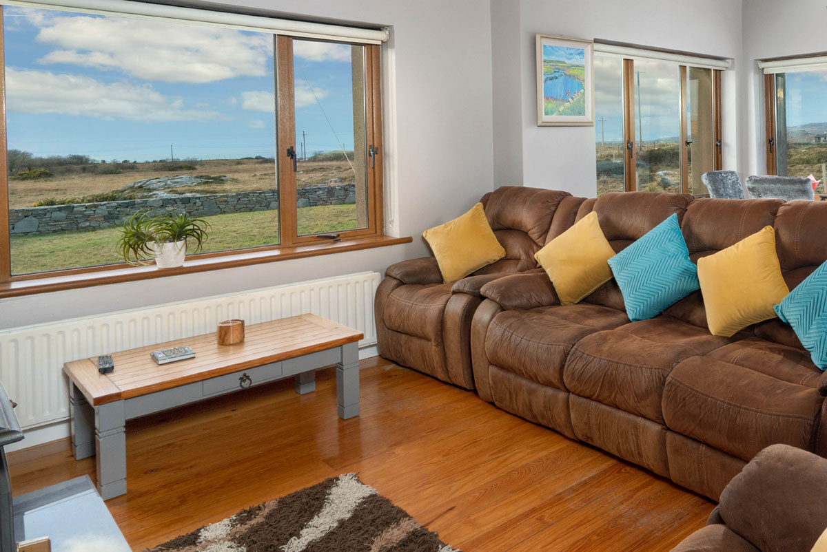 A spacious, high-quality property located at Derrygimlagh, close to Ballyconneely village and within a short drive of Clifden town. This property is ideally suited for families and friends seeking a well-equipped luxurious property in a quiet location, while still being a short drive to local towns and villages. An ideal base for exploring the region. The Coral Strand beach is just a 2-minute drive, or 15-minute walk away, and the white sandy beaches at Mannin, Bunowen and Aillebrack can be reached within a 10-minute drive. Access to the Mannin Bay Blueway is located by the Coral Strand Beach, a popular spot for swimmers, kayakers, and coastal snorkelling. The Wild Atlantic Way Discovery Point at Derrygimlagh which includes a 5km interactive looped walk around the Marconi Wireless Station and the landing site of Alcock & Brown is just a 4-minute drive away. Ballyconneely village offers two shops, post-office, a bar/restaurant with beer garden, a café, a community centre, and children’s playground. Local activities include fishing, golf, pony trekking, Connemara smokehouse and lots more.