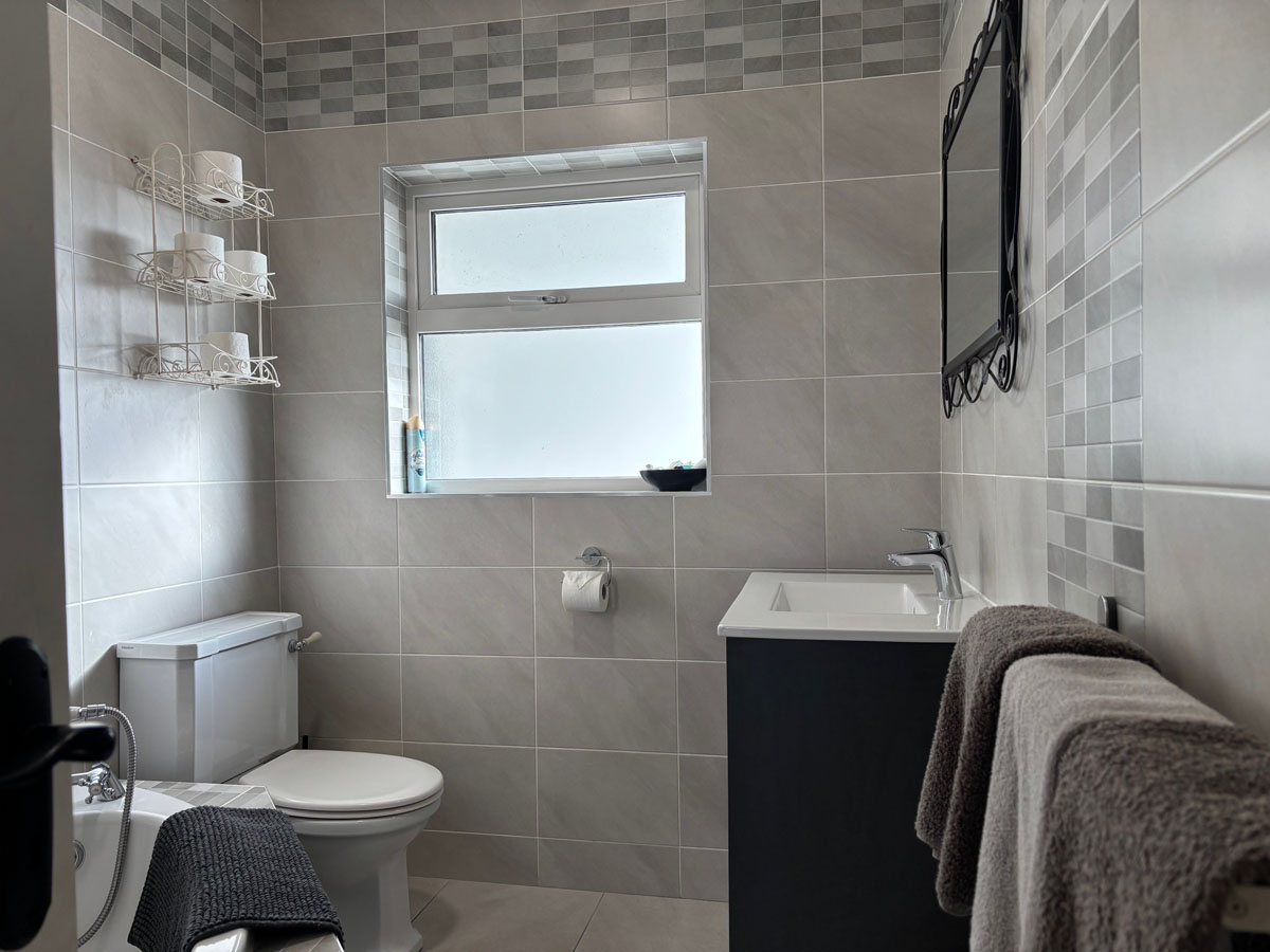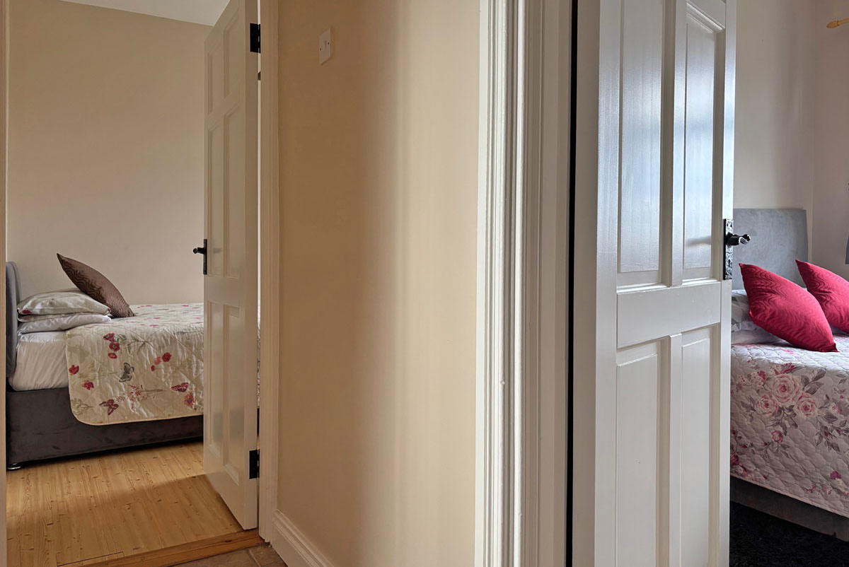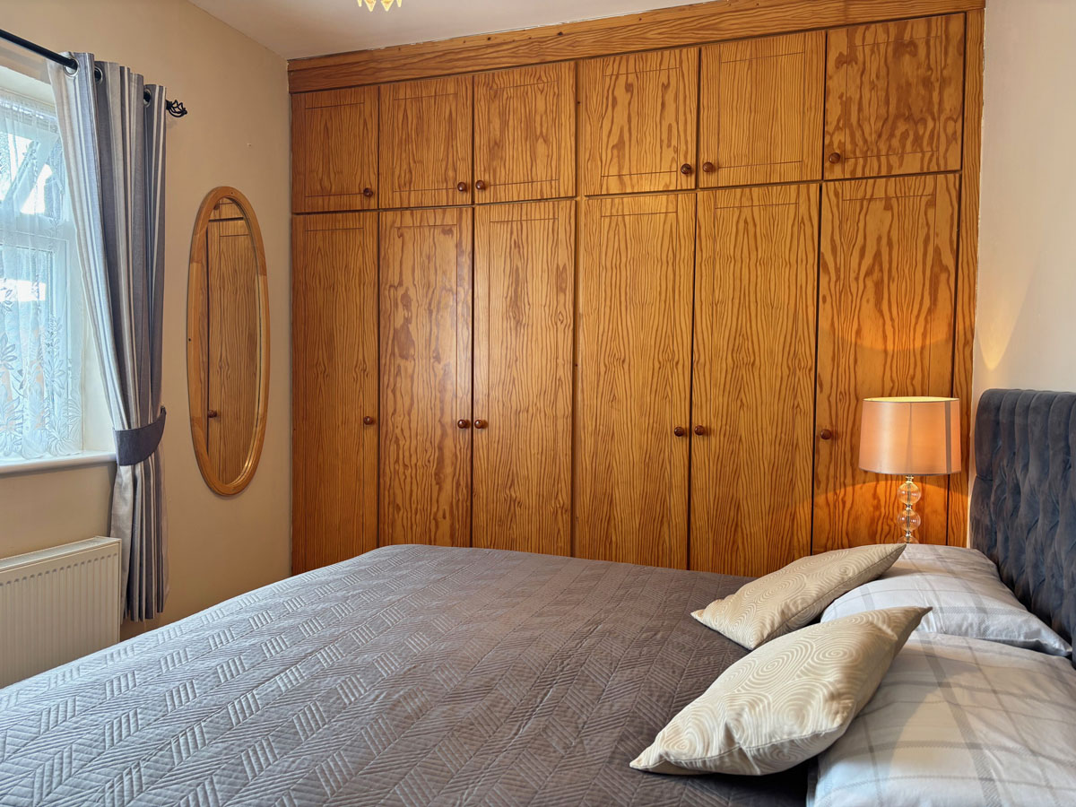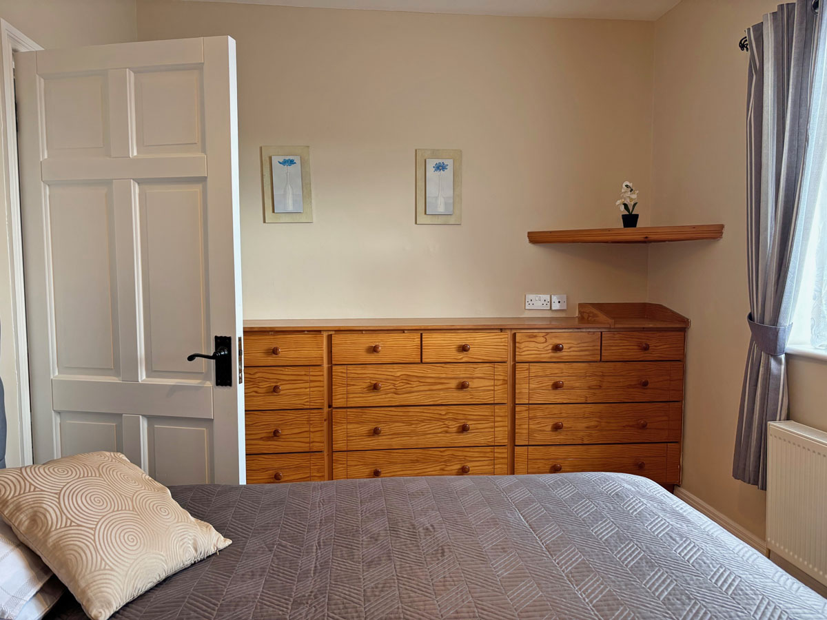 The sleeping accommodation consists of three bedrooms. Bedroom 1 is spacious with a super king bed and fitted wardrobes providing ample storage. Bedroom 2 is a double bedroom, whilst Bedroom 3 is a twin room. The main bathroom includes shower over bath, WC and sink. Private rear enclosed patio with furniture. Wi-fi is available. Cot and highchair are provided. Sorry, no pets. Short breaks are available. Towels and linens are provided. Parking is available for two cars. Shared driveway. Owners live on site.