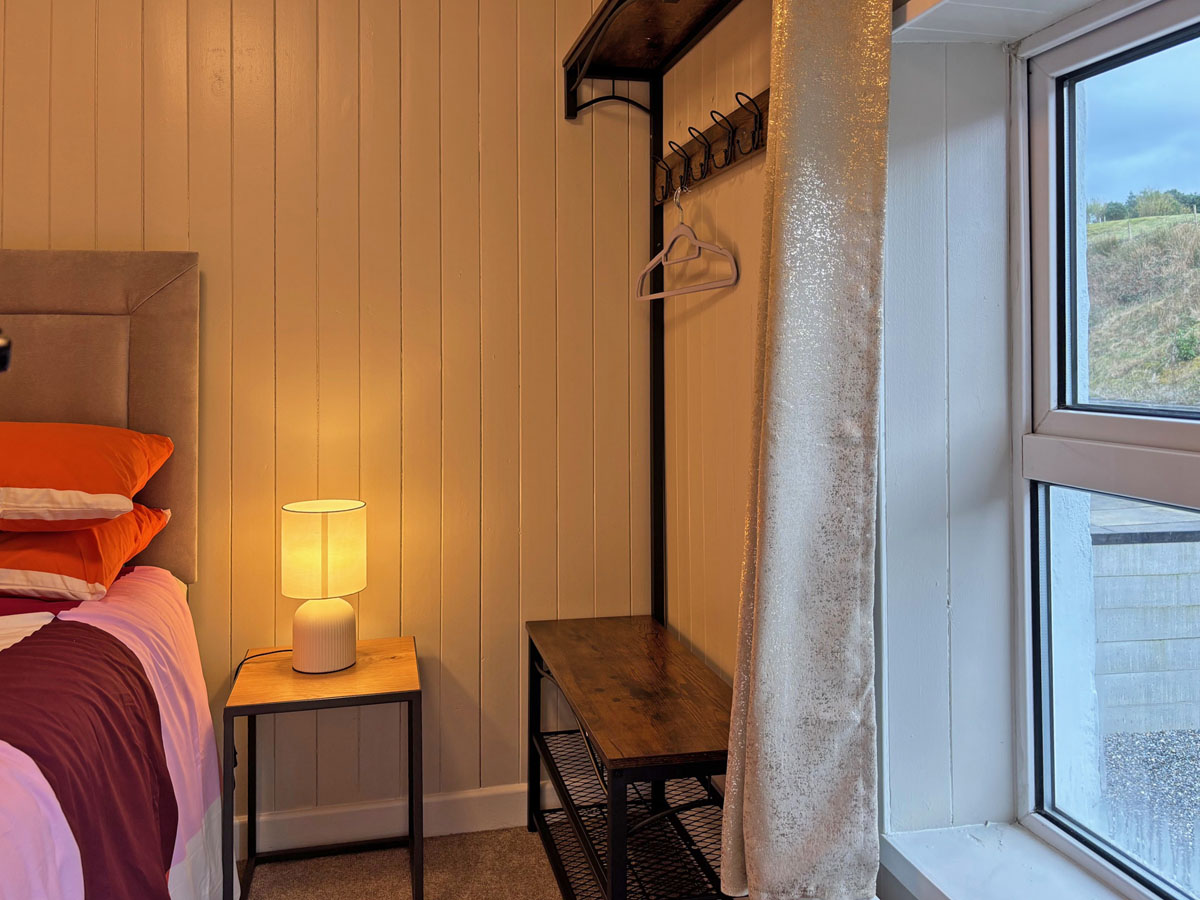 Upon entry, to your right is the cosy living room with 2 plush armchairs and sofa. The kitchen is well equipped with all necessary equipment including dishwasher, microwave, kettle, toaster, fridge freezer, electric hob & oven. The dining area caters for 5 persons perfect for cosy dinners in. Off the kitchen is the utility area which homes a washing/dryer combo machine. The backdoor in the utility area opens to the spacious and private back yard. This is a wonderful space to relax and enjoy the evening with family and friends.